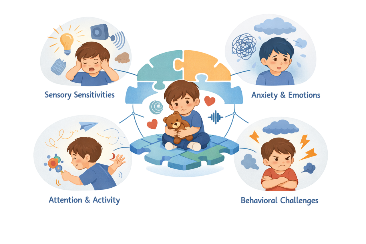 But a recent study brings a new way of understanding this. Instead of seeing these as separate conditions happening together, researchers suggest that many of these challenges may actually be deeply connected through how a child experiences and responds to the world.